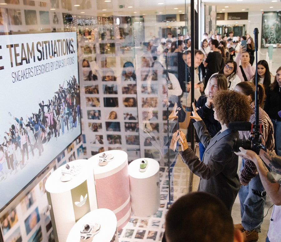 We set ourselves a crazy challenge for the release of the adidas by Lena Situations collection – the first French content creator to sign a capsule collection with adidas Originals. We co-created a campaign with 150 of her followers! This involved collecting their photos and videos to integrate them into a collaborative film, and also photographing them at a private event to produce a giant 180m mural, which was displayed in the corridors of Montparnasse and Franklin Roosevelt.