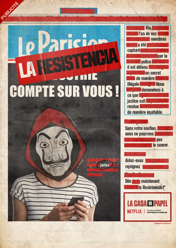 For the release of season 3 of La Casa de Papel, mnstr orchestrated a massive and simultaneous hack on Parisian train stations and mainstream French media - the gang interrupting daily life, calling French people to join the ‘Resistance’.